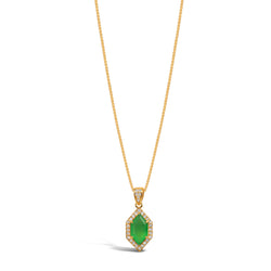 Introducing the Hikari Necklace—hikari, meaning “light” in Japanese, features a chrysoprase gemstone framed with sparkling white sapphires. A symbol of joy, clarity, and renewal, this necklace brings a touch of radiance to every collection.
