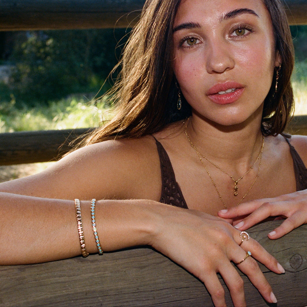 A modern classic, the Nova Bracelet catches the light with its sleek shape of polished 18k gold or rhodium and pavé-set CZ diamonds. The craftsmanship in this piece shines for itself.